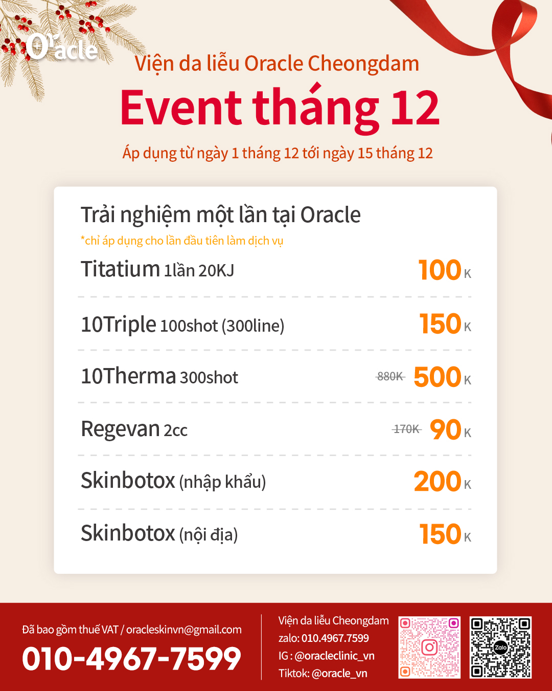 Tên Công ty: Viện da liễu Oracle CheongdamNgười đại diện: Lee Young Sook